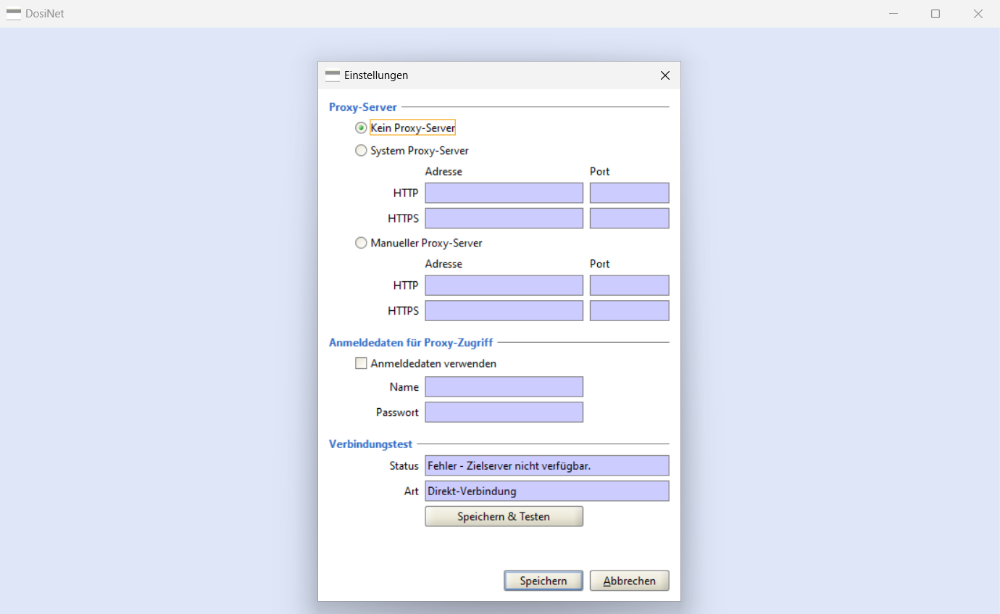 Dadurch kann der Eindruck entstehen, dass DosiNet nicht funktioniert oder es ein Problem am eigenen PC / Netzwerk gibt.